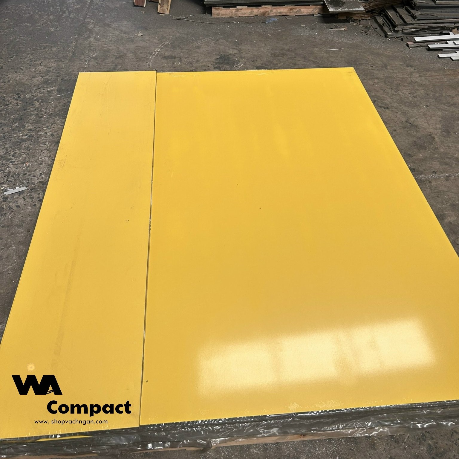 Tấm Compact HPL màu vàng kháng nước 100% độ bền trên 20 năm sử dụng được cung cấp và lắp đặt bởi Cty Vina Compact